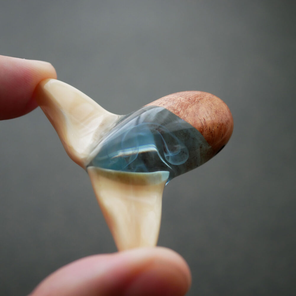 この作品は、残り少ないマッコウクジラの骨と花梨瘤を使ったホエールテールネックレスです。
