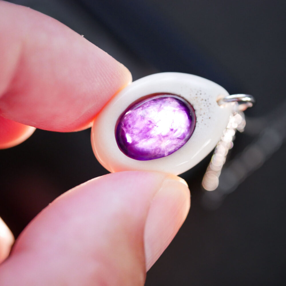 鹿角とアメジストのネックレス